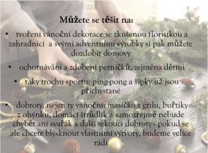 Připravili jsme si pro vás vánoční setkání, kde budeme tvořit, sportovat, hodovat, ale hlavně pohodově se bavit.